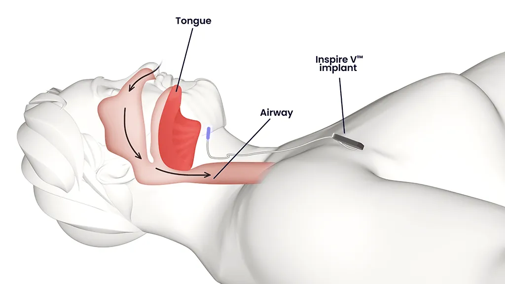 Inspire® implant: Keeps your airway open while you sleep so you can breathe regularly and sleep soundly.
